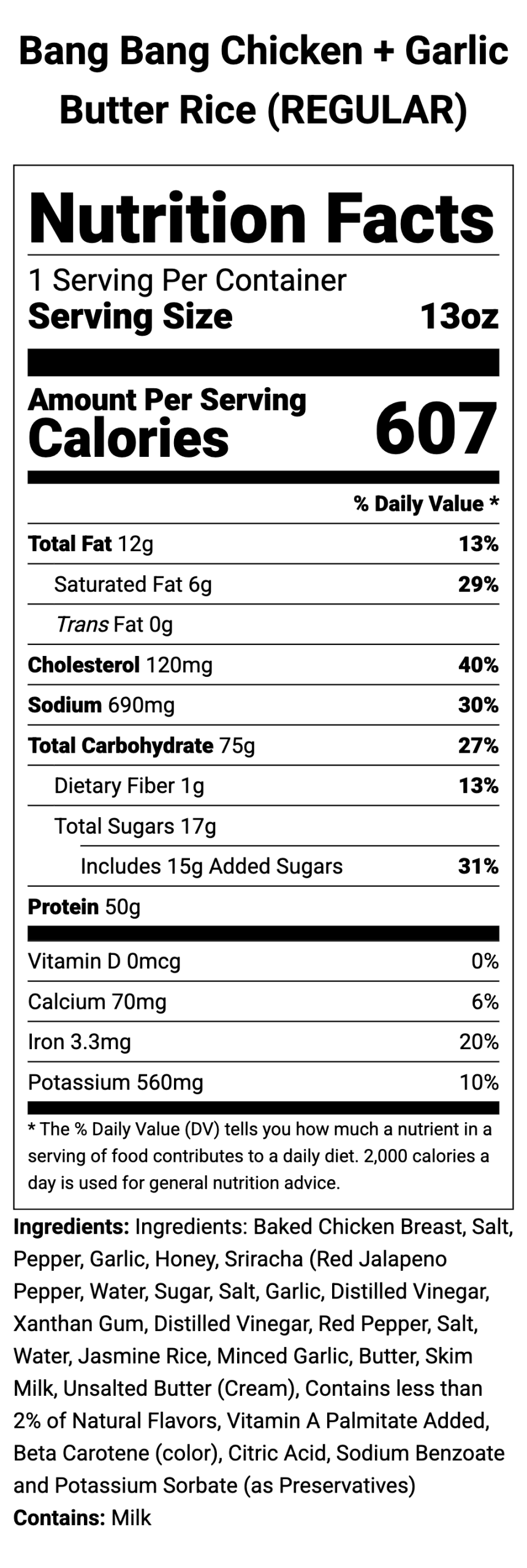 Juicy chicken tossed in a sweet and spicy creamy sauce, served over rich garlic butter rice.