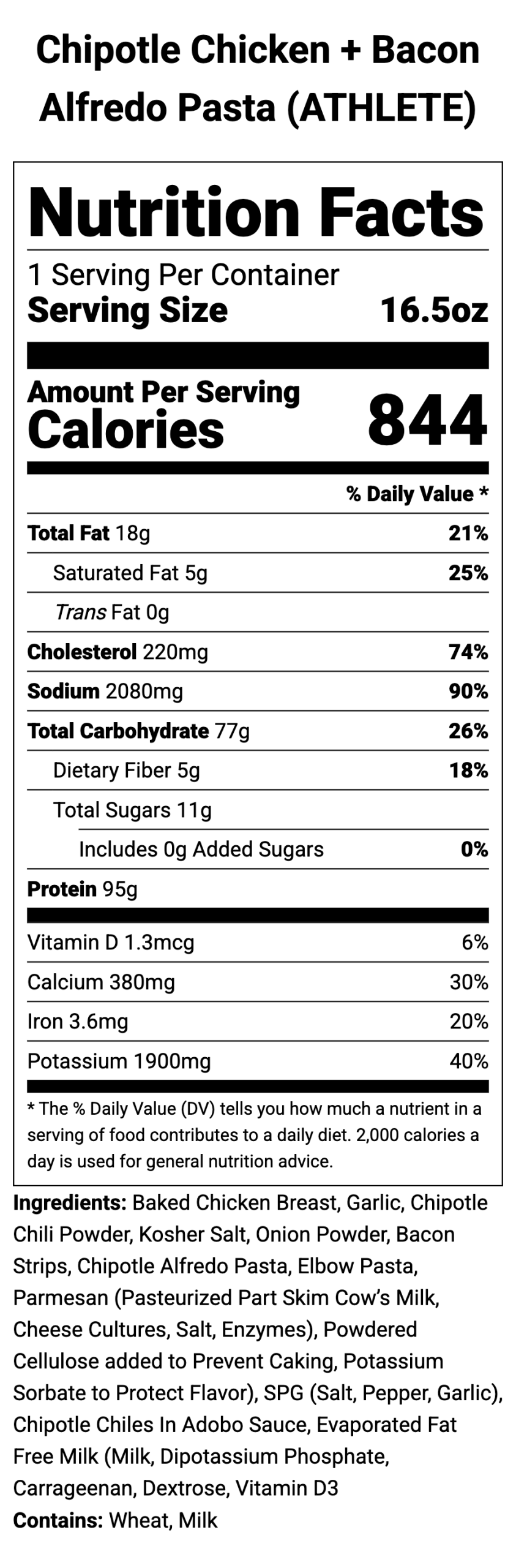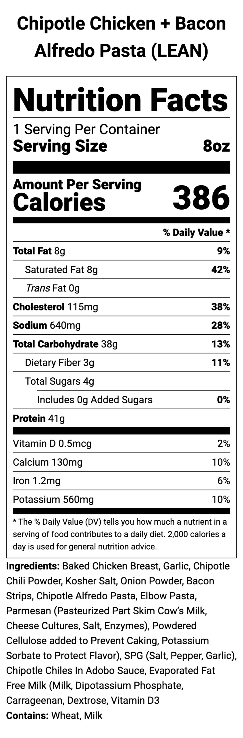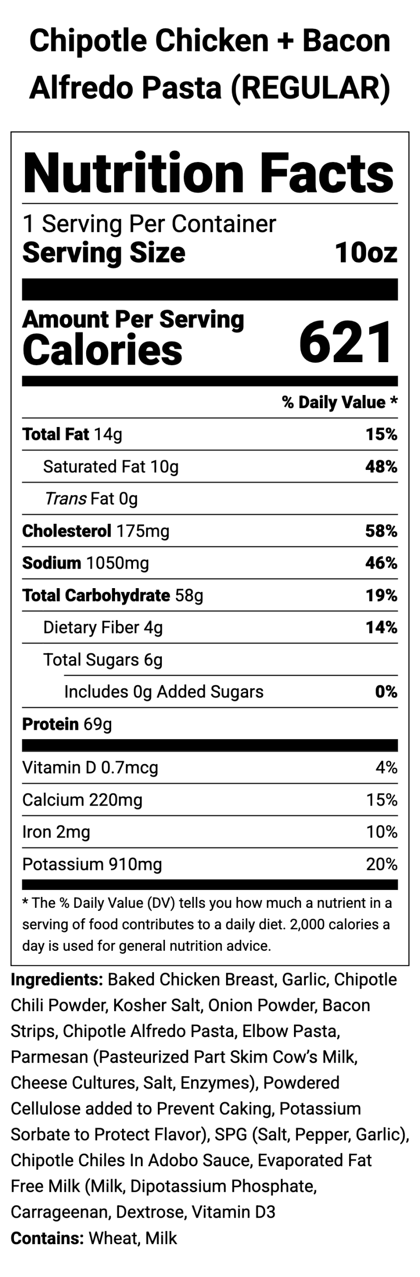 Chipotle seasoned chicken mixed with a creamy and spicy mix of chipotle seasoning, bacon, and alfredo pasta.