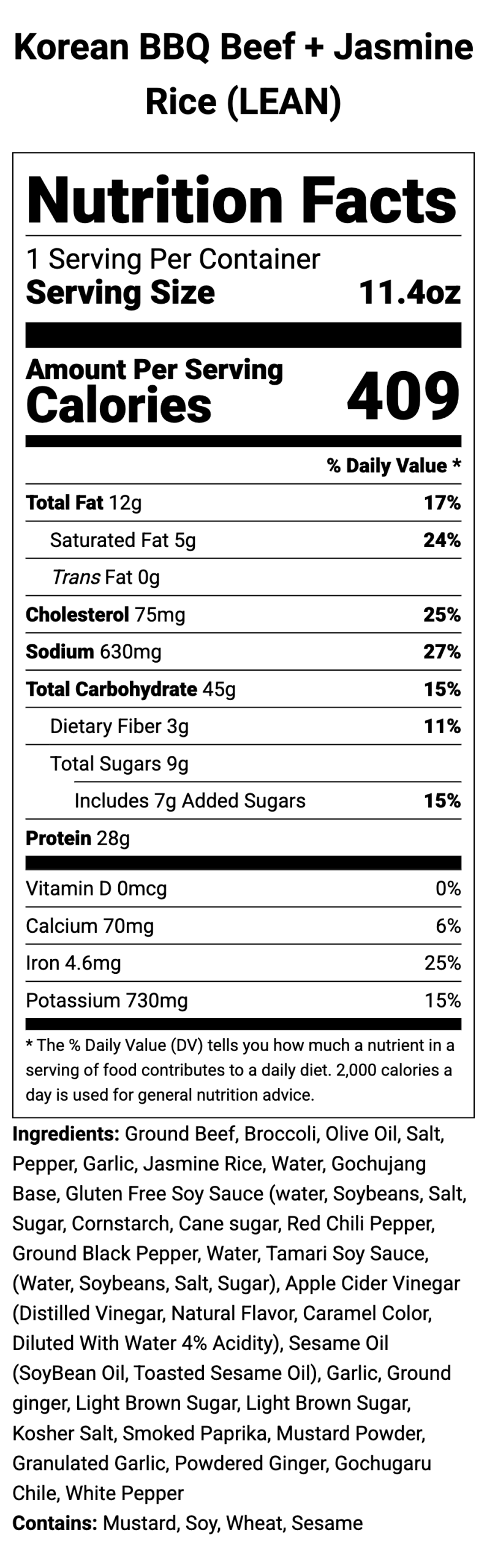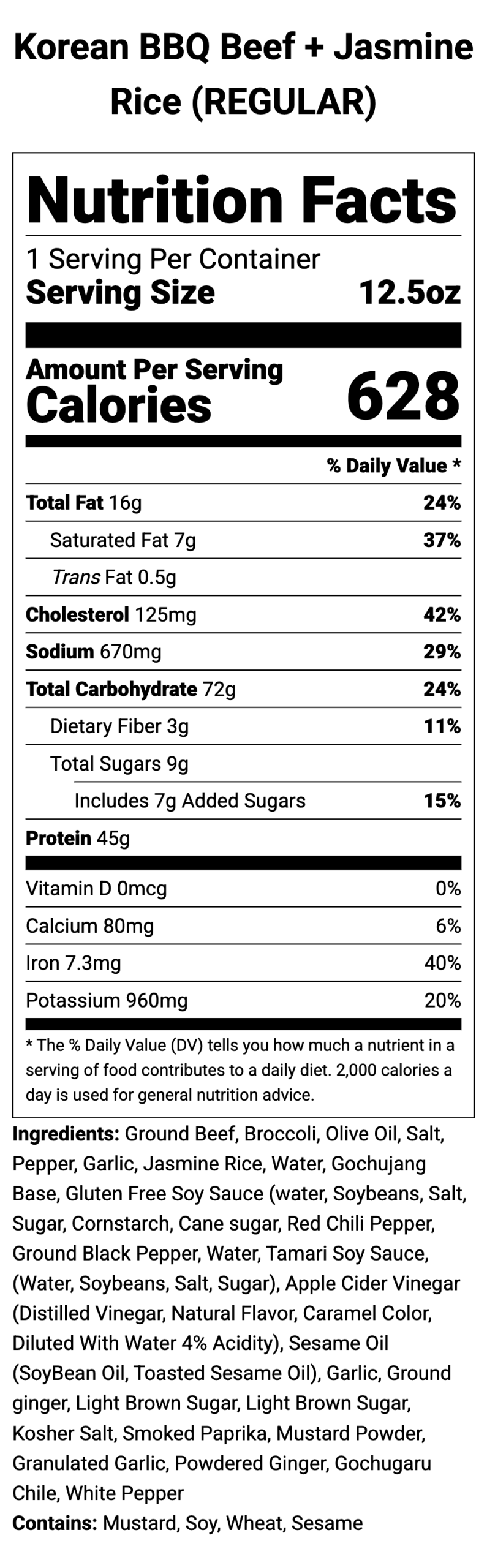 Sweet, spicy Korean BBQ beef served over jasmine rice with tender steamed broccoli.